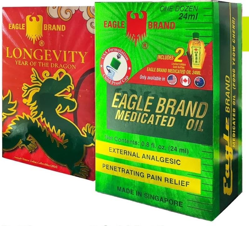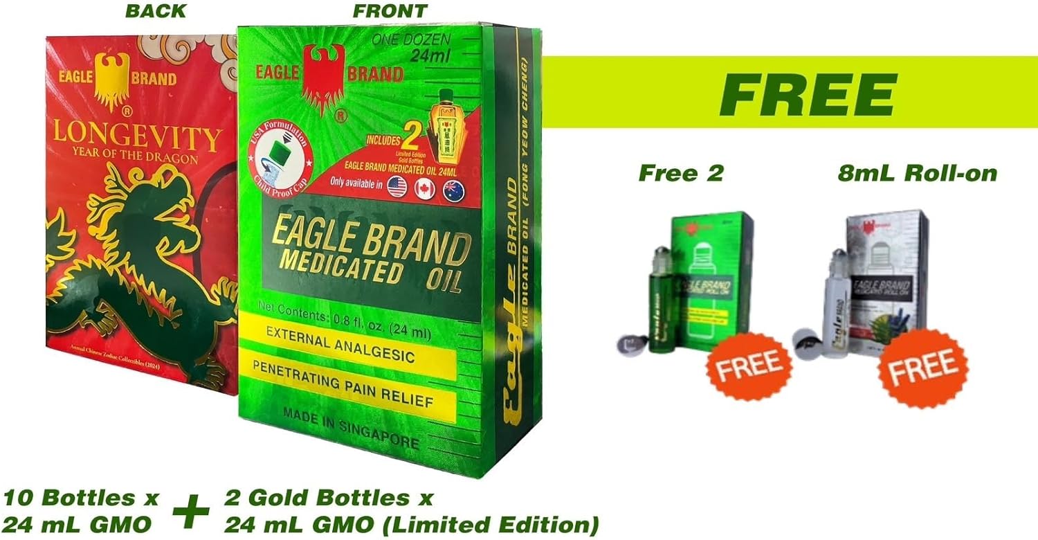 Eagle Brand Medicated Oil Dozen Pack, TET 2024 Limited Edition Pack with 2 free Roll-Ons (Dầu Gió Con Ó)