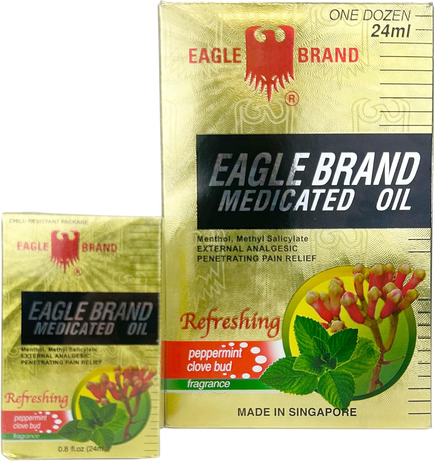 Eagle Brand Medicated Oil, Refresh-Peppermint Clove Bud - One Dozen (Dầu Gió Con Ó)
